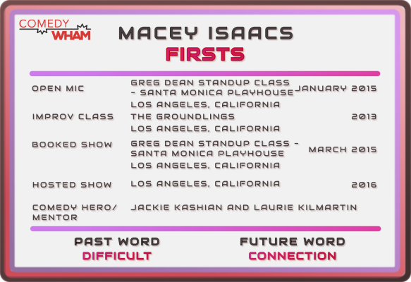 Macey Isaacs joins us for a delightfully thoughtful-yet-silly deep dive into her journey from overly serious kid to sharp, darkly playful standup comic. We talk basketball, Groundlings, Dry Bar and Don’t Tell specials, and why hitting 10 years in comedy finally made her feel like she truly belongs on stage. Along the way, she proves that smart jokes, mental health chats, and a love of Elvis can all happily share the same spotlight. Special shoutouts to Jackie Kashian and Laurie Kilmartin for their wonderful Laurie and Jackie Show for guiding Macey along the way.