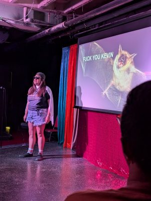 Clowning is having a moment, and after experiencing a September evening curated by host Marceline Amaris, I understand why. For those unfamiliar with the form, it’s sketch without narrative plot goals — a space where characters and scenarios exist simply to be what they are. About thirty eager enthusiasts gathered to watch a handful of performers explore this refreshing, anything-goes approach to comedy.