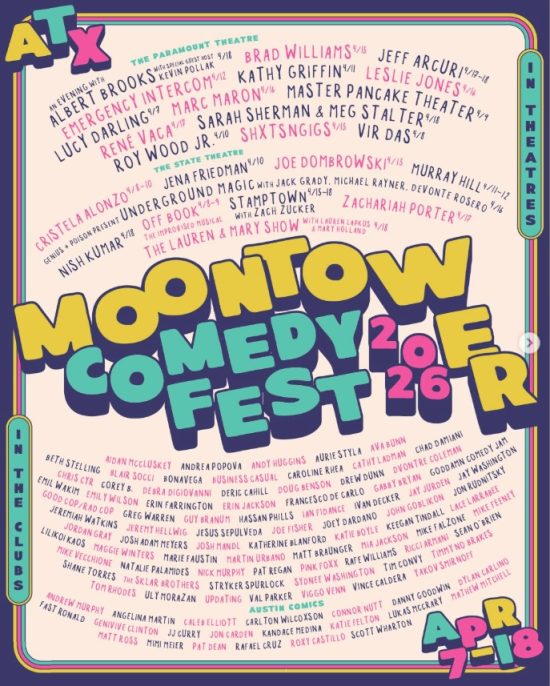 Two weeks. Ten-plus venues. Over 130 comedians. Every April, Moontower Comedy Festival turns downtown Austin into what can only be described as summer camp for comedy nerds — and we would not have it any other way. This is the 14th edition of the festival, and if the lineup is any indication, they are absolutely not coasting.
