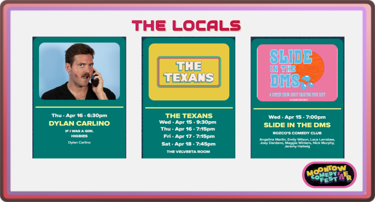 One of the things that has always set Moontower apart is the genuine presence of Austin and Texas comics — not just as openers, but woven into showcases throughout the festival. This year’s local contingent is especially strong.